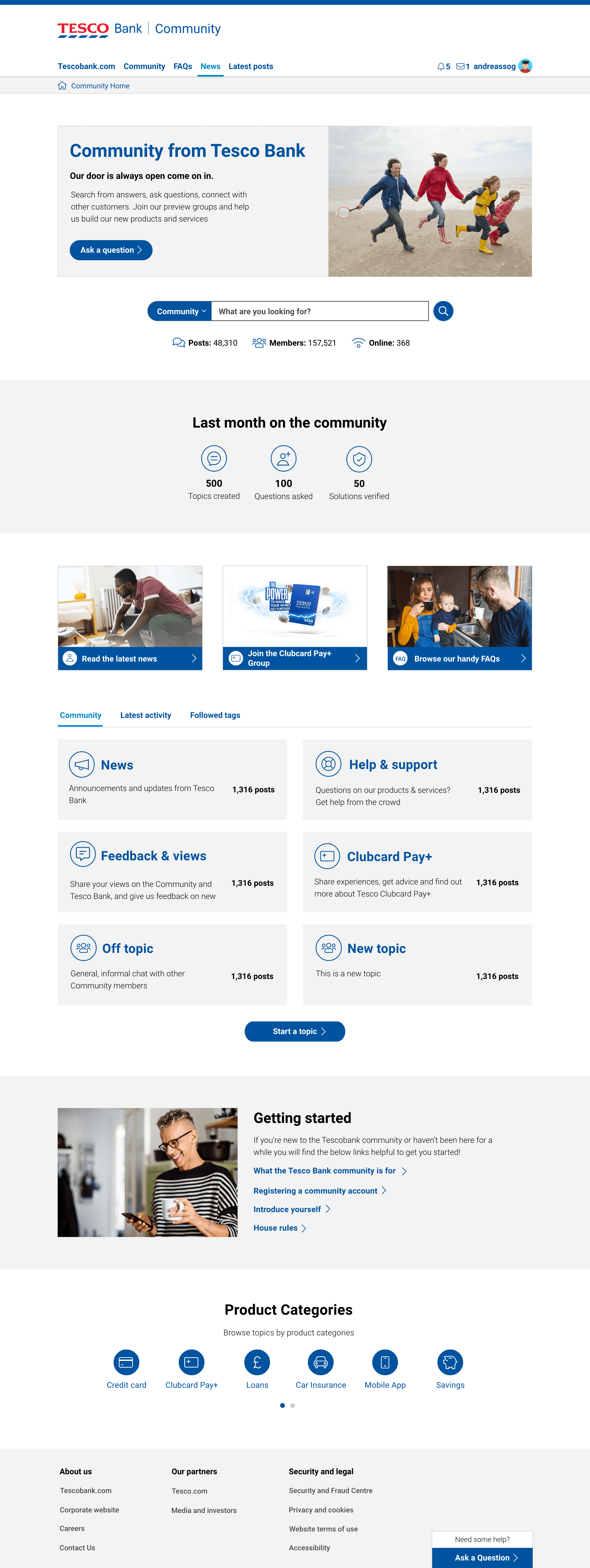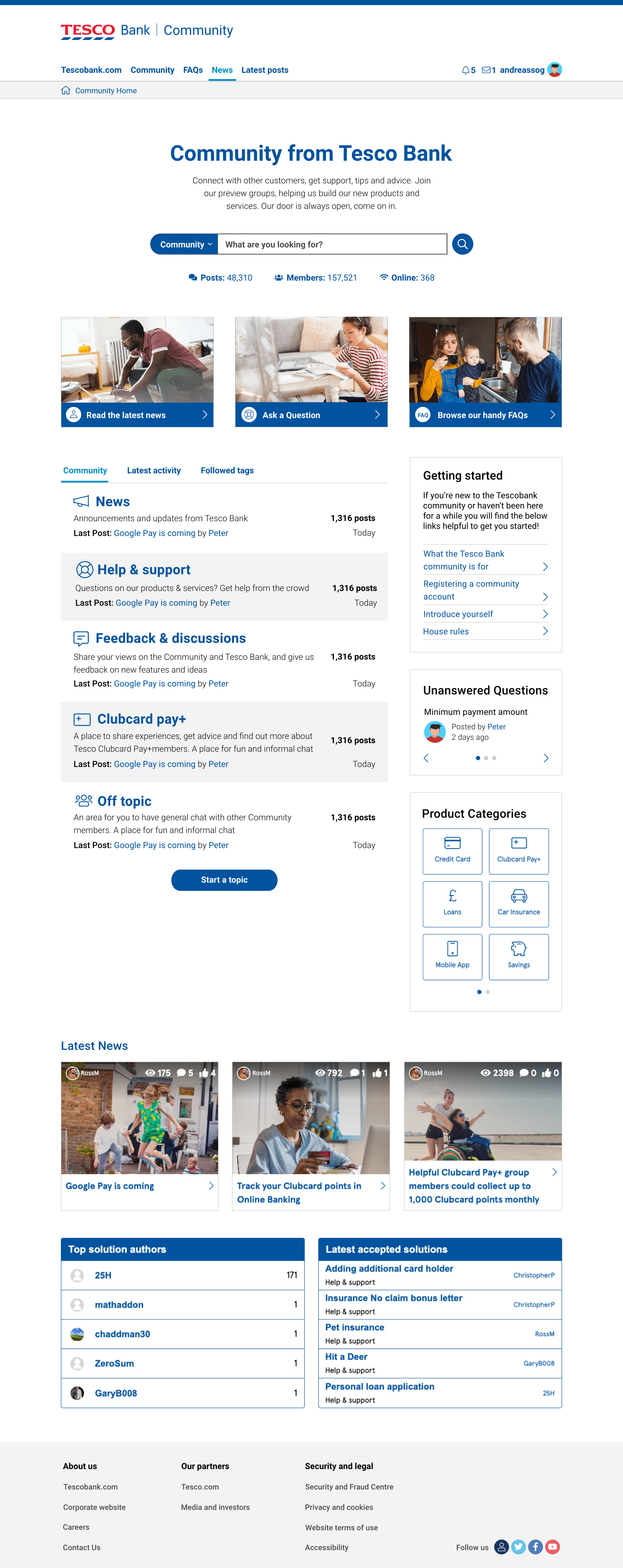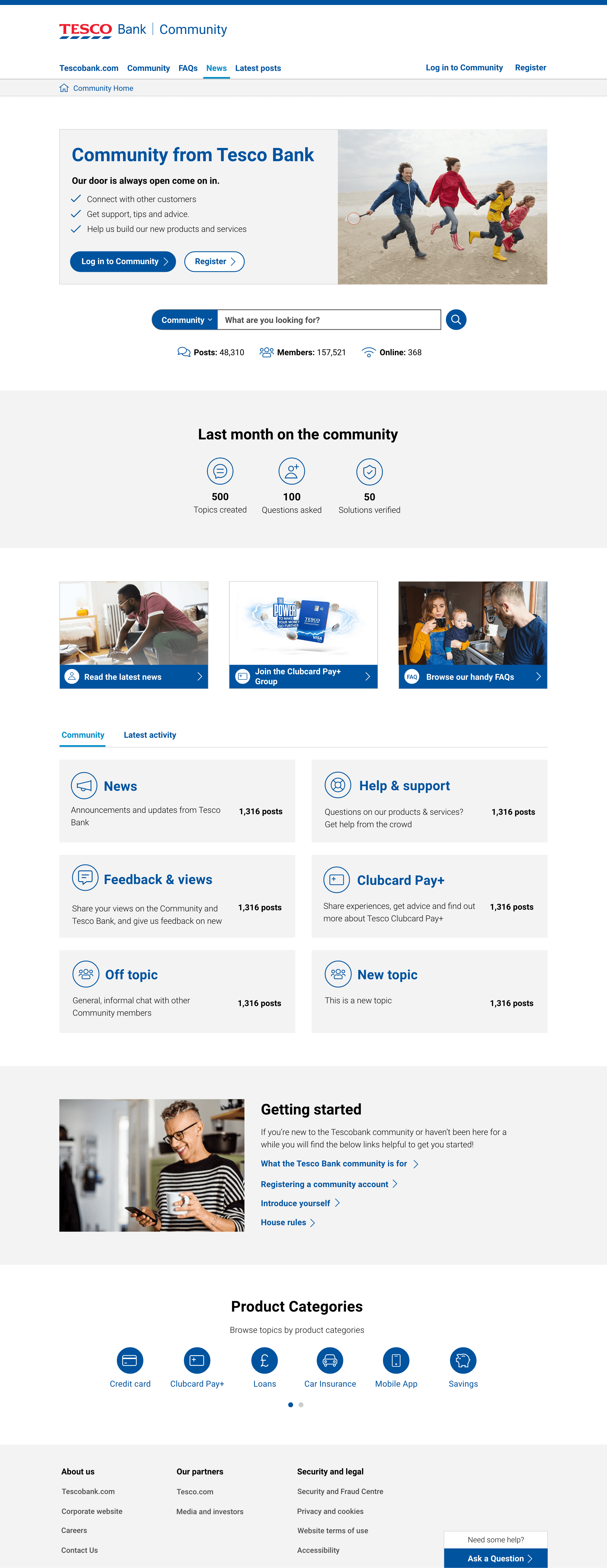 Tesco Bank is a UK retail bank offering a range of financial products and services. Its community platform provided customers with a space to connect, get support, and find helpful information.